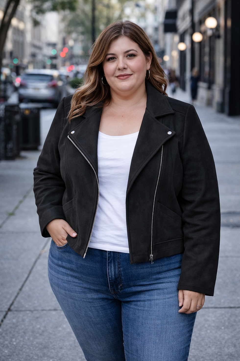 Léana mesure 1.68m et porte habituellement une taille 44/46.